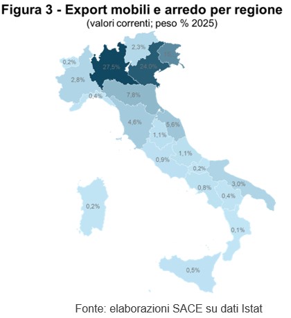 Particolarmente significativa è la performance della Puglia (+12,2%), prima regione del Mezzogiorno che si distingue per un tessuto produttivo dinamico e orientato a innovazione, sostenibilità e digitalizzazione, anche grazie al supporto di specifici incentivi regionali. In termini di specializzazione territoriale, la regione si caratterizza in particolare per la produzione di divani e poltrone nelle aree di Matera, Bari e Barletta-Andria-Trani.